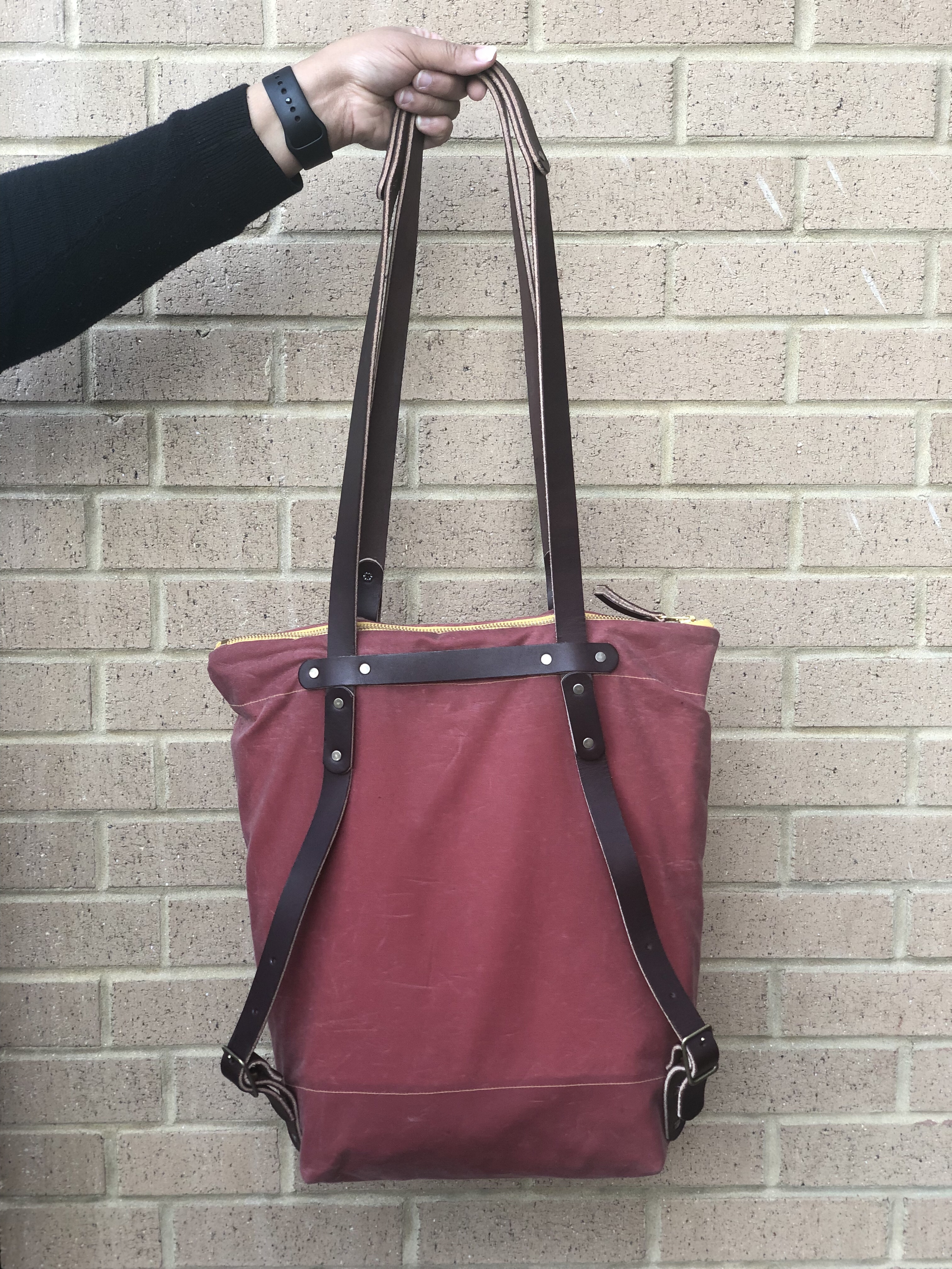 The more you set the tubular rivets, the easier it gets. There’s a little groove you get into and you can feel the shape of the rivet changing as you strike it. This is a satisfying project that I immediately began to use once I finished it. It looks sleek AND it’s strong enough to carry all of my things. I like pretty things but I love functional things. This project checks both of those boxes.