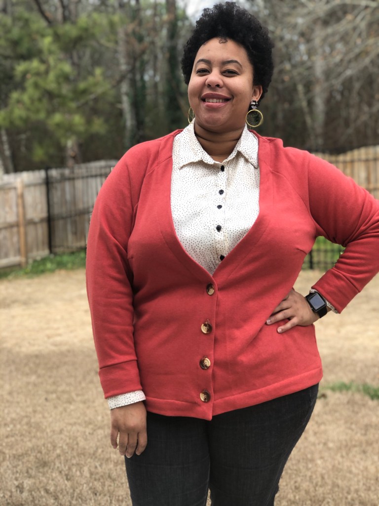 As much as I have been fighting the end of Summer, Georgia has decided (seemingly overnight) to enter the Fall season. That means I’ll start to layer cardigans and jackets over my summer dresses to extend their life. I don’t necessarily have a distinct summer or winter wardrobe. I’ve been trying to make garments that can be worn almost year round. The Cashmerette Fuller cardigan is a layer that I’ve worn a variety of items in my closet to transition into the seasons. The chill in the air reminded me that I never shared my version on my own blog.
