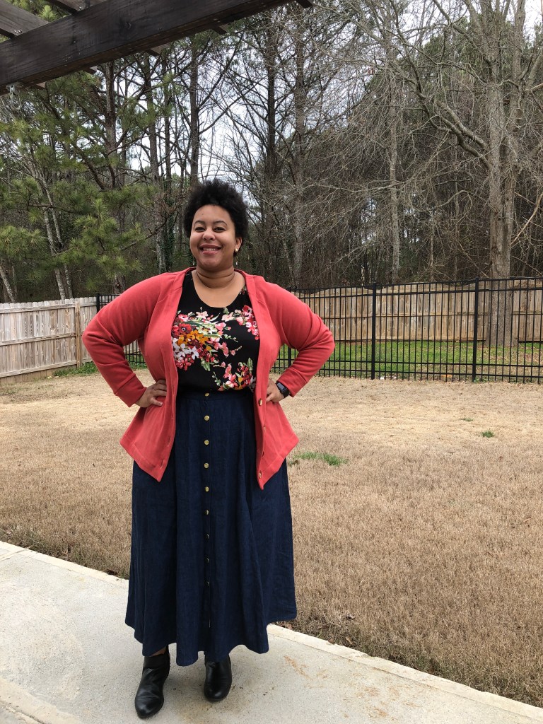 I paired my Fuller cardigan with two me-mades: my Ames jeans and Byrdie button up. I’ve wanted to wear a cardigan, jeans, and a button up for such a long time. I’m so happy that I was able to make that into a reality! Of course I wore sneakers because sneakers are my favorite. I’m here for comfort and style.