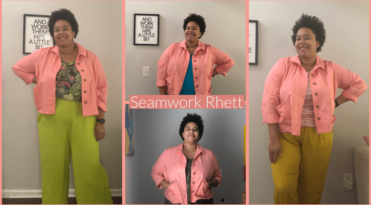 Hey y’all! I have a lot of things that I’ve made but not shared on my blog. I’ll be going through some of these in the coming months. First up is the Seamwork Rhett. I was really interested in making this pattern when it came out because it felt like a funky (and more approachable) denim jacket. I liked the boxy silhouette and cropped length. It seemed like a lightweight layer that could pair with many of the garments I’ve already made. Thats important to me because a lot of my makes in the past were scattered one-off garments that were super cute but difficult to pair. I didn’t really think about how things would work together in my wardrobe. Don’t get me wrong, I still love a good unicorn make! But I also really enjoy making pieces that can be worn in a multitude of ways.